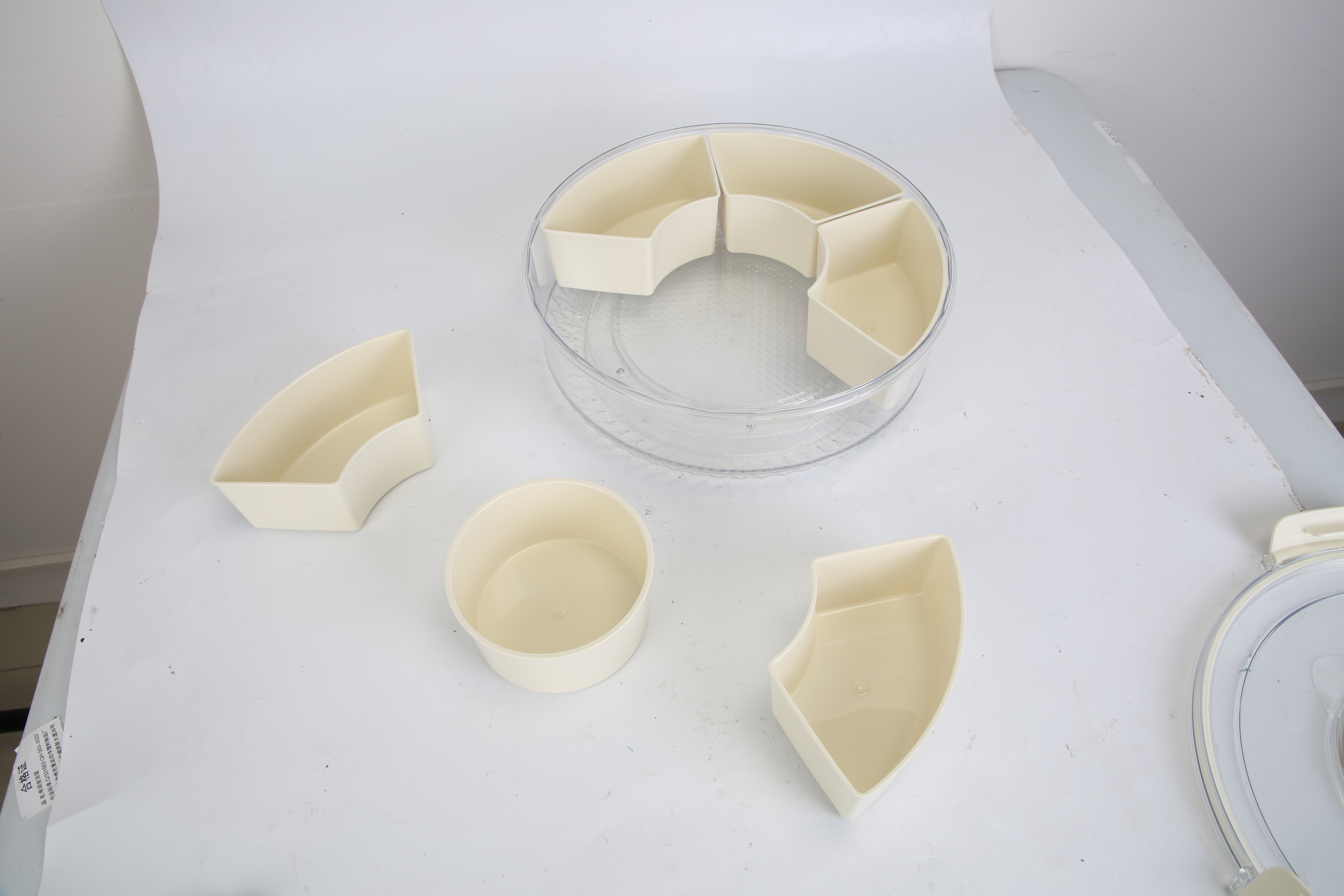 - *360° Rotatable Design*: Equipped with a 360°Rotatable base,allowing you and your friends to get easy access to all sides of the tray without needing to reach awkwardly across a table or counter. Effortlessly serve yourself!