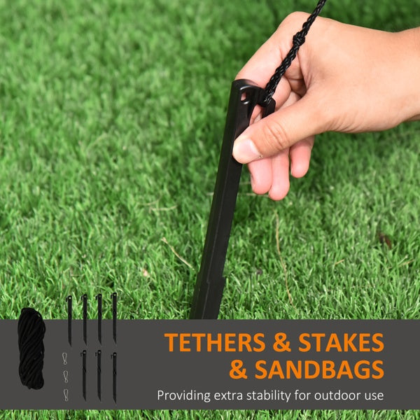🧰 Complete Setup Kit — Comes with 3 tether ropes, 7 ground stakes, 3 sandbags, and a manual for secure anchoring.